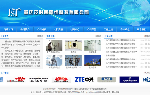 公司主要從事程控交換、寬帶數(shù)通、通信電源、光電傳輸、光纜干線、通信管道、移動通信、鐵塔安裝、網(wǎng)絡(luò)維護(hù)、系統(tǒng)集成、土建及配套等業(yè)務(wù)。擁有中國電信、移動、聯(lián)通及政企客戶四大目標(biāo)市場,并與華為、中興、愛立信、朗訊、思科等國內(nèi)外著名設(shè)備制造商合作。業(yè)務(wù)遍及重慶全境。