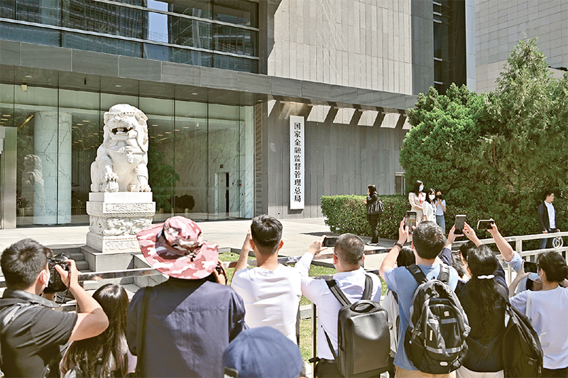 2023年5月18日,國家金融監督管理總局正式掛牌,我國金融監管機構改革邁出重要一步。圖為當日媒體記者在國家金融監督管理總局門前拍攝。 新華社記者 李鑫/攝